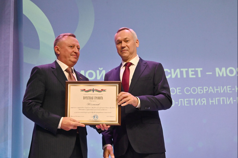 В ходе торжественного собрания Андрей Травников вручил и.о. ректора Новосибирского государственного педагогического университета Сергею Нелюбову почетную грамоту губернатора Новосибирской области, адресованную коллективу НГПУ.