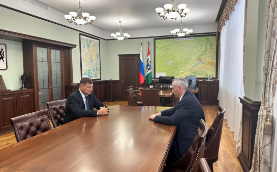 Андрей Травников поздравил Сергея Синяева со вступлением в должность, пожелал ему успехов в работе, обозначил основные направления развития г. Обь.