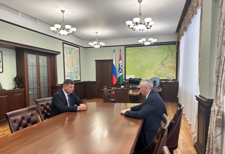 Андрей Травников поздравил Сергея Синяева со вступлением в должность, пожелал ему успехов в работе, обозначил основные направления развития г. Обь.
