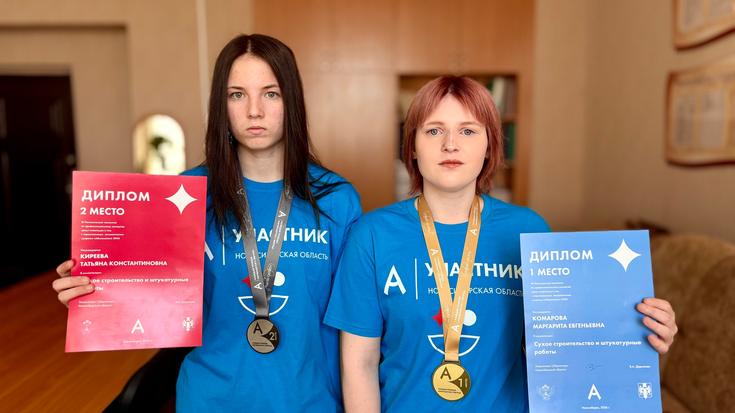 С 14 по 22 апреля 2026 года в Новосибирской области состоялся XI Региональный чемпионат по профессиональному мастерству «Абилимпикс». Это масштабное событие ежегодно собирает самых талантливых и целеустремленных молодых людей, готовых доказать: для настоящего мастерства нет преград. В этом году честь Кочковского района на чемпионате защищали обучающиеся Кочковского межрайонного аграрного лицея Маргарита Комарова и Татьяна Киреева под руководством мастера производственного обучения Александра Александровича Куропатника. Девушки выступали в компетенции «Сухое строительство и штукатурные работы» (профессия «штукатур, маляр»). Соревнования в этой номинации проходили 14 апреля на базе Новосибирского центра профессионального обучения № 1. В атмосфере настоящей профессиональной борьбы, где каждый мазок и каждый элемент конструкции имели значение, кочковские участницы продемонстрировали высокий уровень подготовки. По итогам напряженного дня жюри присудило: I место — Маргарите Комаровой, II место — Татьяне Киреевой. Для Татьяны это не первая награда на чемпионате: в прошлом году на X региональном этапе она уже поднималась на пьедестал почета, завоевав бронзовую медаль. Ее упорство и стремление к совершенству вызывают искреннее уважение.