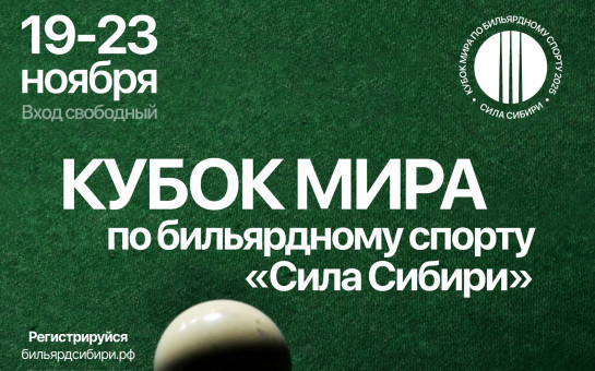 С 19 по 23 ноября 2025 года в РВЦ «Локомотив Арена» (ул. Ипподромская, 18) пройдет Кубок мира по бильярдному спорту «Сила Сибири». Открытие турнира и первый игровой день запланированы на 19 ноября, в то время как полуфиналы и финал состоятся 23 ноября. На мероприятии будут выставлены 12 бильярдных столов от новосибирского производителя, который изготавливает свои изделия по высоким международным стандартам.